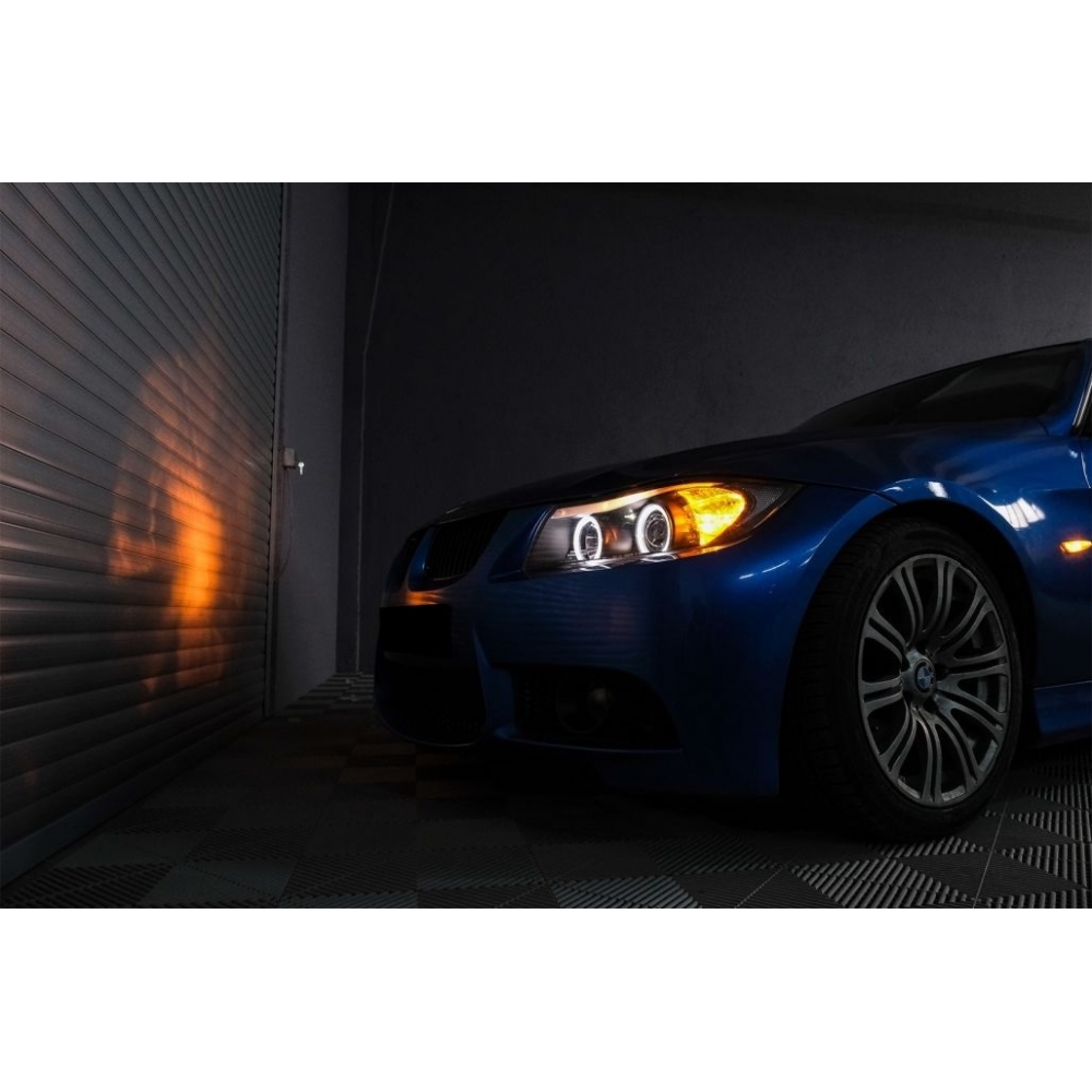 BMW E90/E91 (05-08) priekšējie lukturi, eņģeļ acis, melni