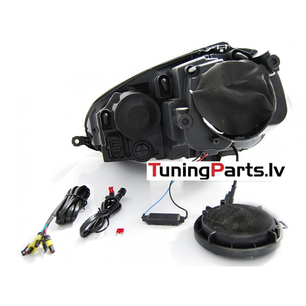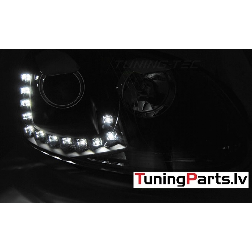VW Golf 5 (03-09) priekšējie lukturi, LED DRL, melni