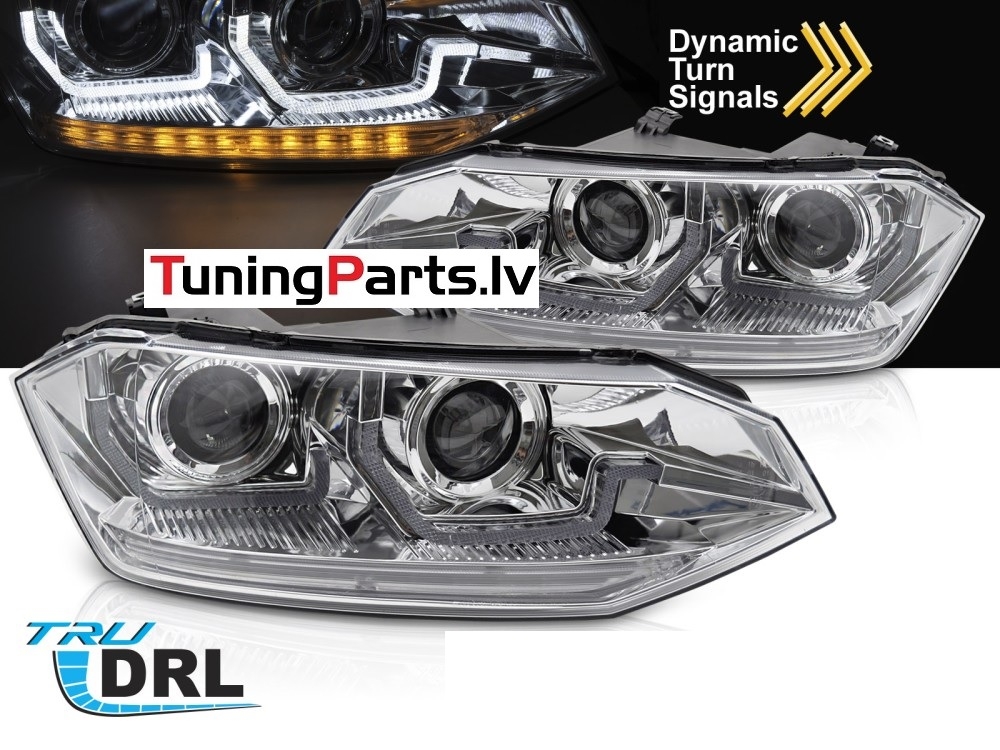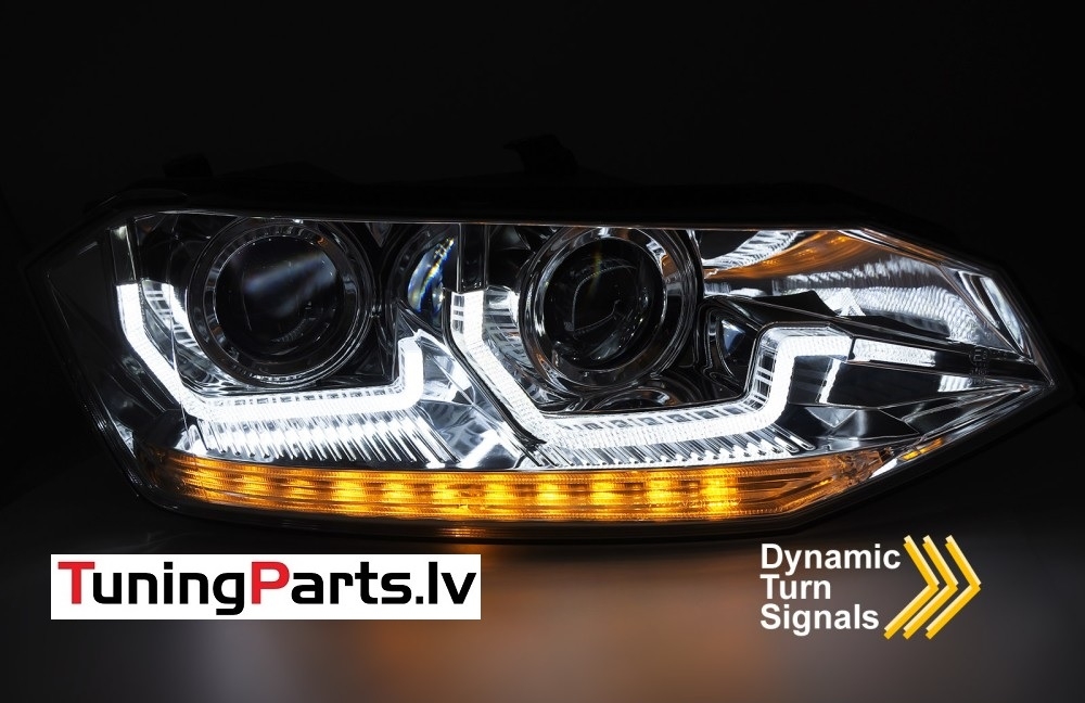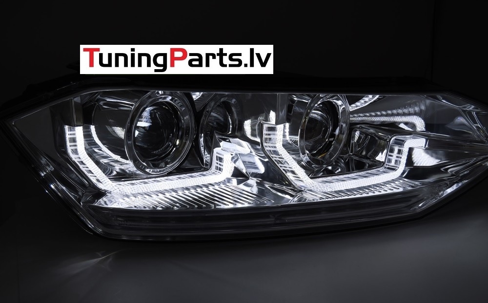 VW Polo VI 2G (17-21) priekšējie LED DRL lukturi, dinamiskie pagriezieni, hromēti