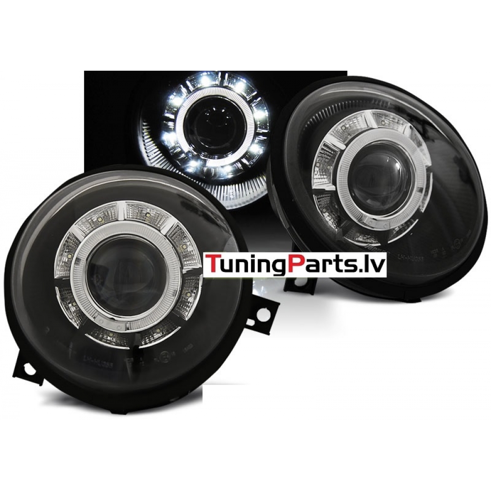 VW Lupo (98-05) priekšējie LED lukturi, eņģeļ acis, melni