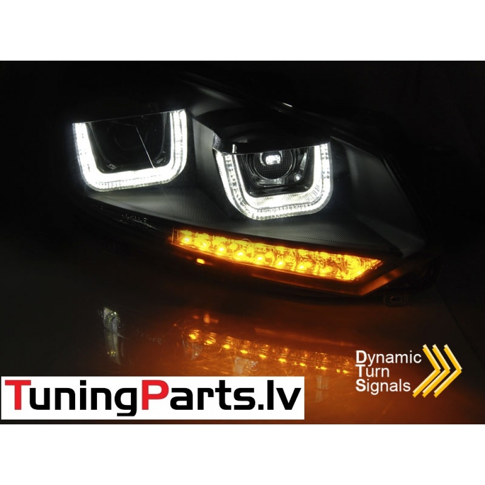 VW Golf 6 (08-12) priekšējie U LED DRL lukturi, dinamiskie pagriezieni, melni