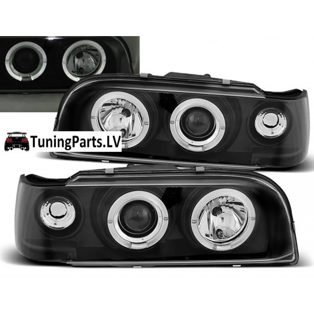 Volvo 850 (92-97) priekšējie lukturi, melni, eņģeļ acis