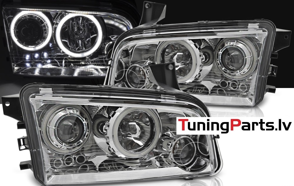 Dodge Charger LX (06-10) priekšējie lukturi, eņģeļ acis, hromēti
