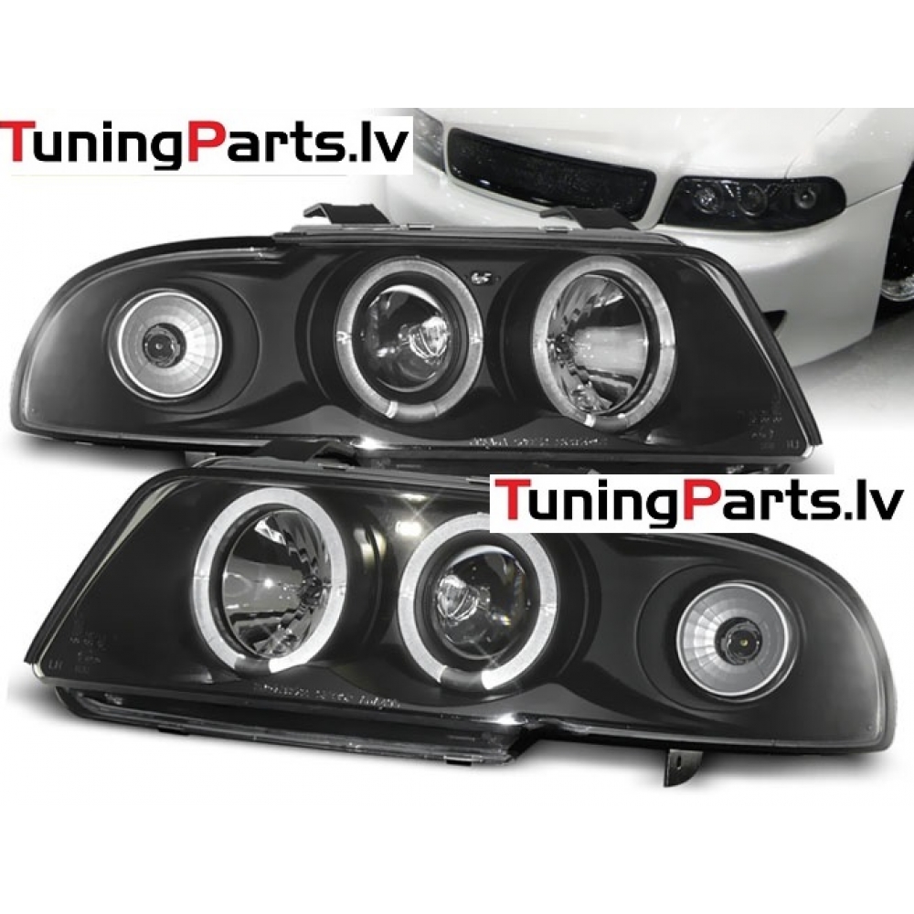 Audi A4 B5 (94-99) priekšējie lukturi, enģeļ acis, melni