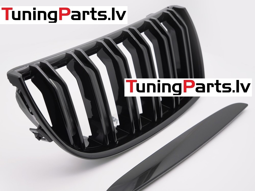 BMW E90/E91 (05-08) priekšējās restes + uzlikas, melnas, glancētas M dubultās