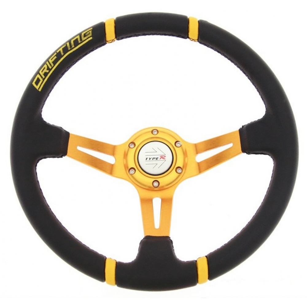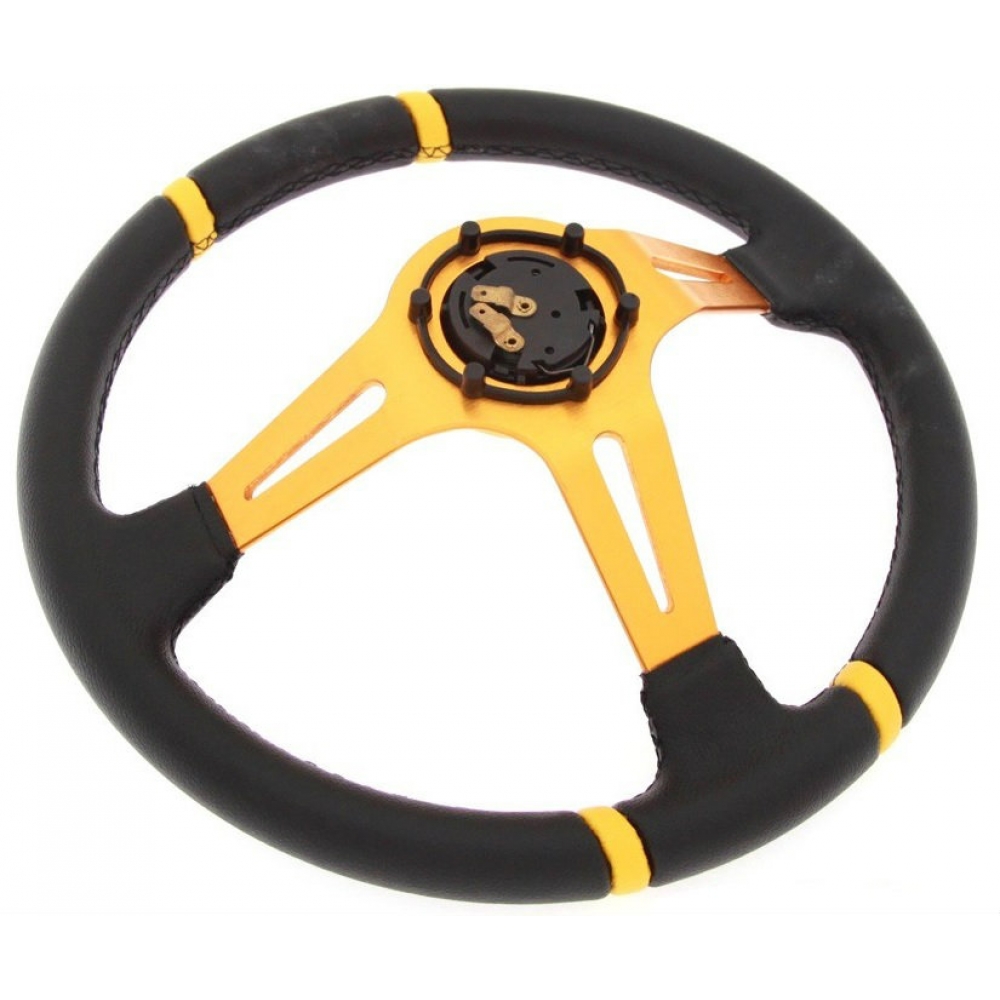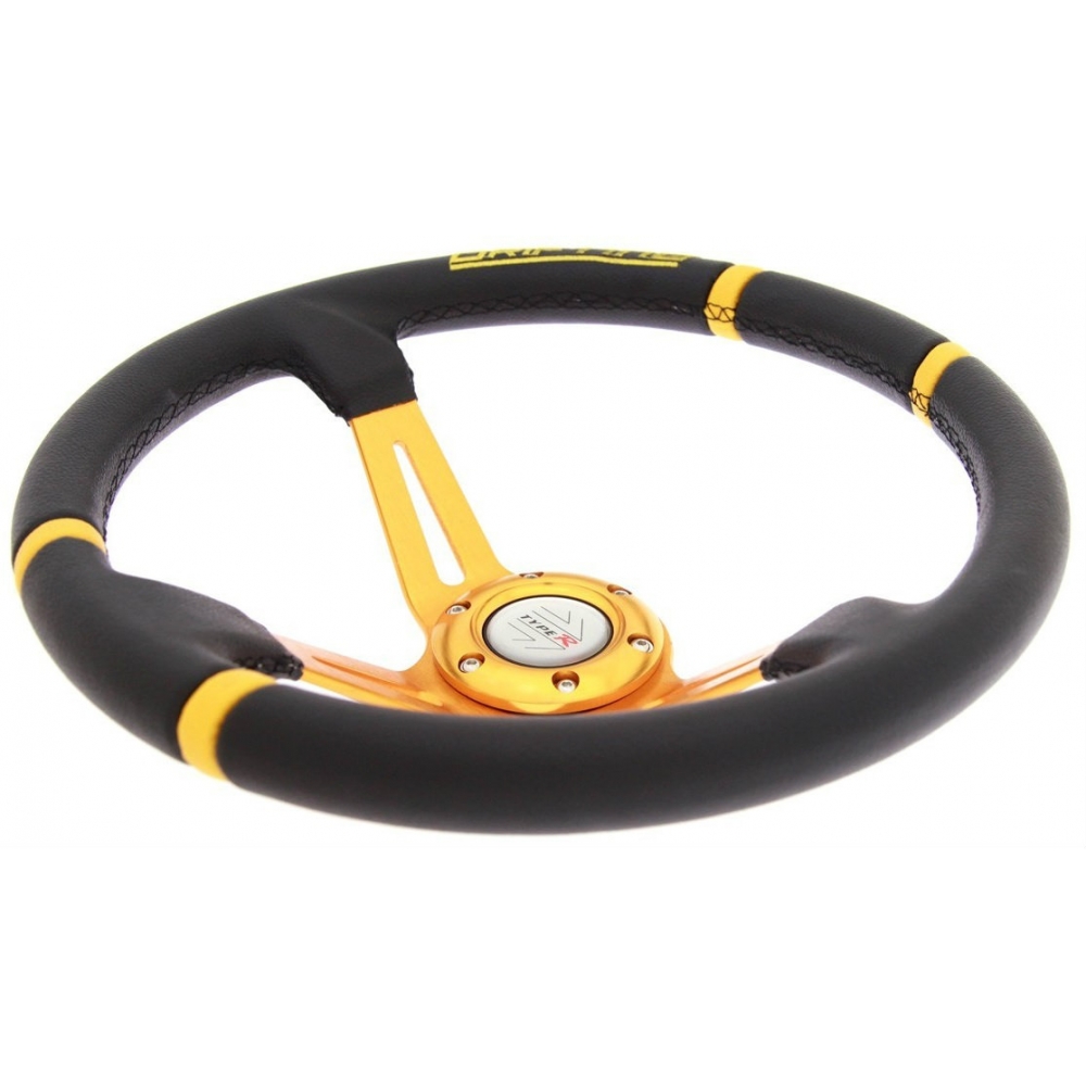 Stūre, mākslīgās ādas, 350mm, 80mm iznesums, melna ar dzelteniem spieķiem DRIFTING