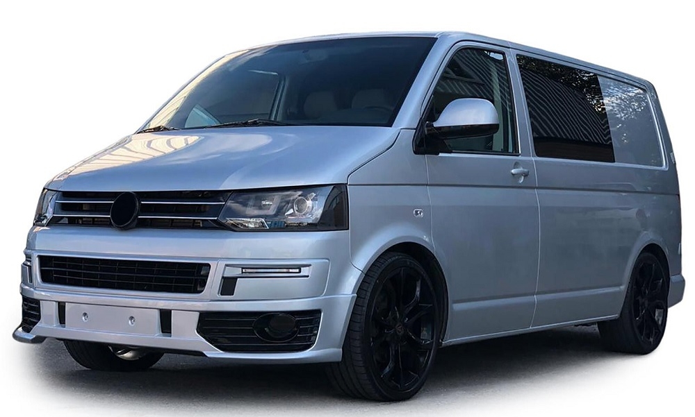 VW T5 (09-15) priekšējā bampera uzlika Sportline look + miglas lukturu restes melnas/glancētas