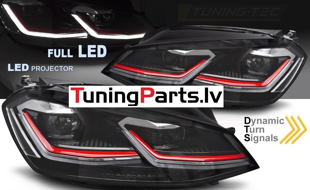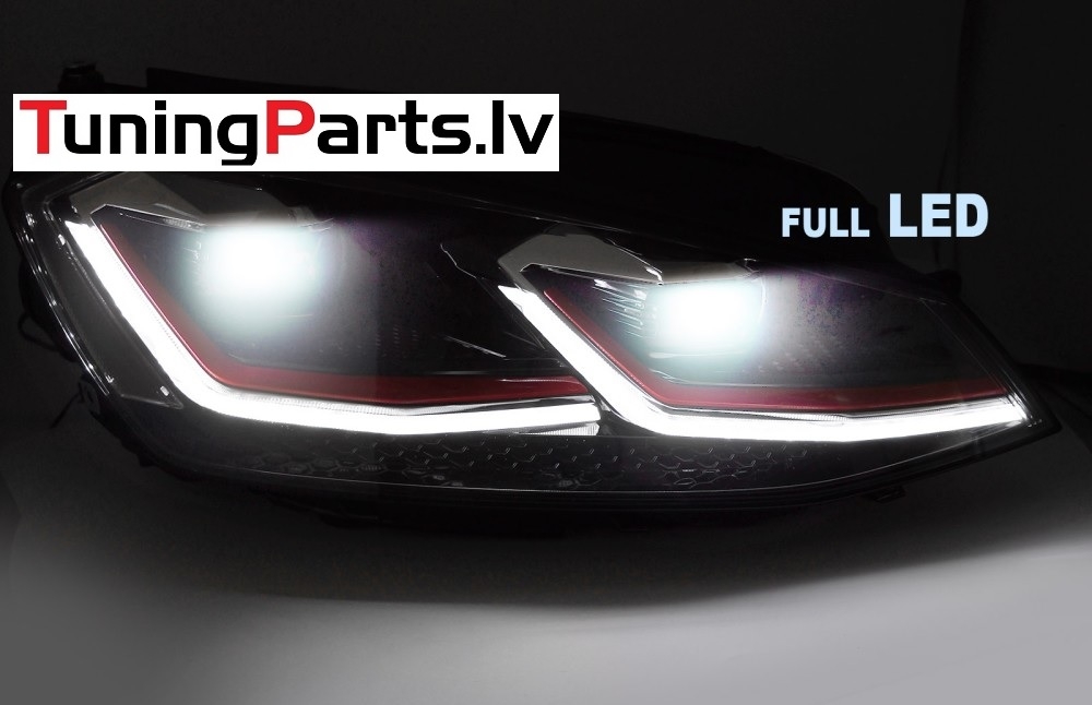 VW Golf 7 (12-17) priekšējie FULL LED DRL lukturi, dinamiskie pagriezieni, gaismas sveiciena funkcija