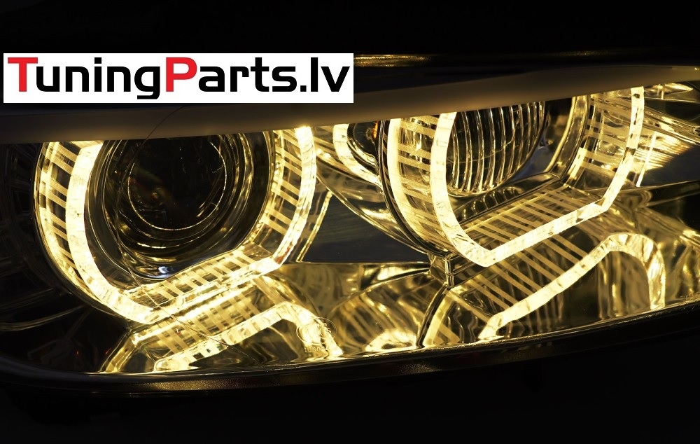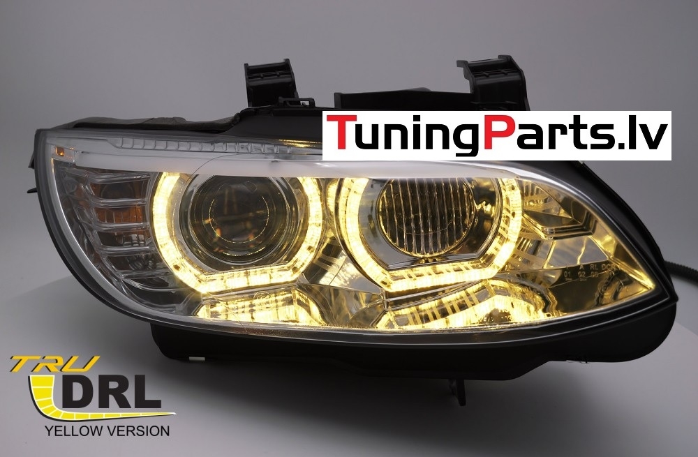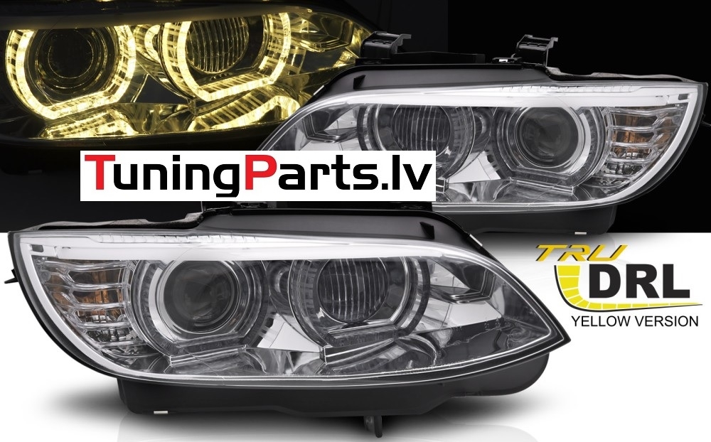 BMW E92/E93 (06-10) priekšējie lukturi, 3D LED eņģeļ acis, hromēti, Xenona, DRL