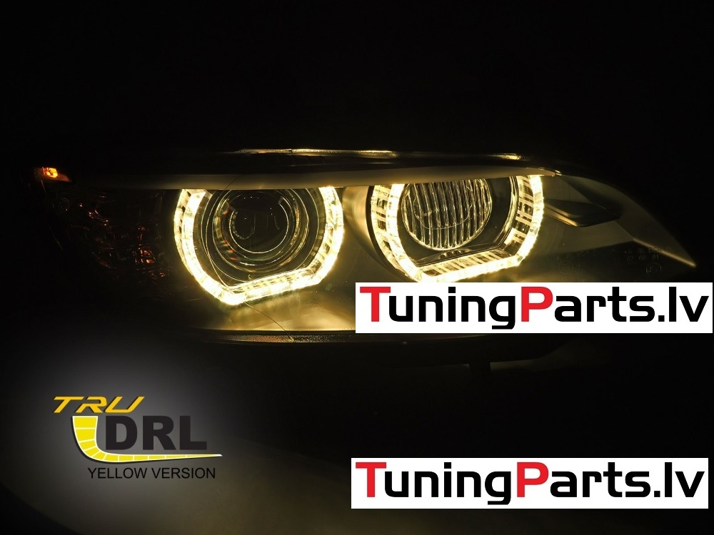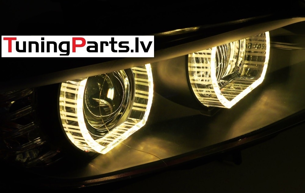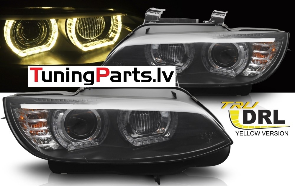 BMW E92/E93 (06-10) priekšējie lukturi, 3D LED eņģeļ acis, melni, Xenona, DRL