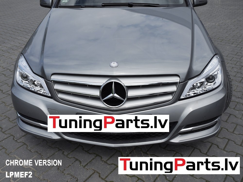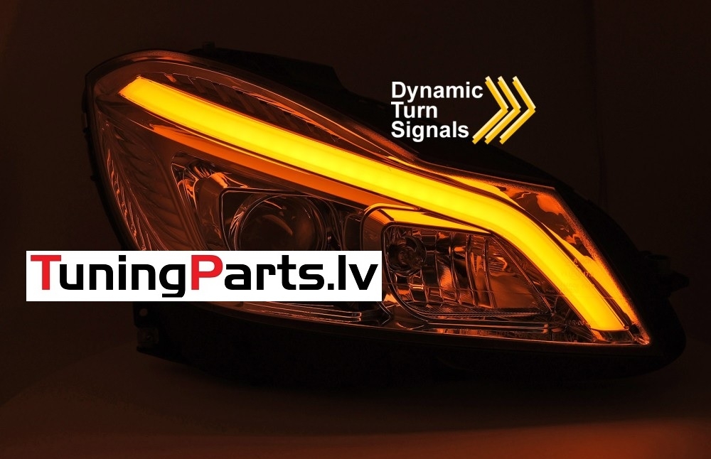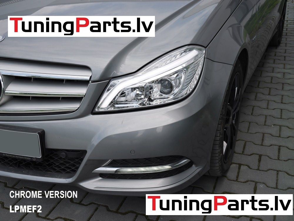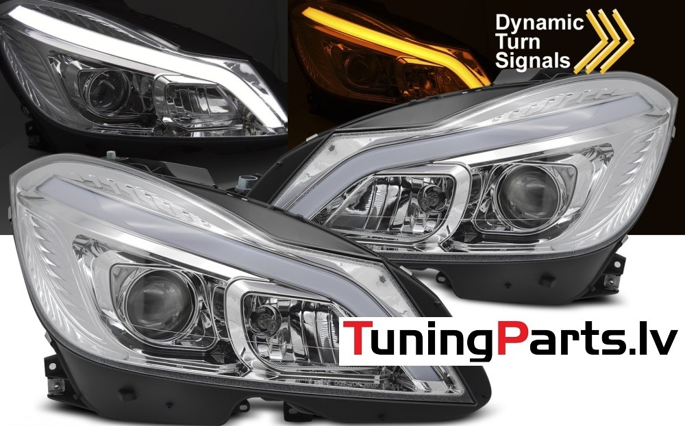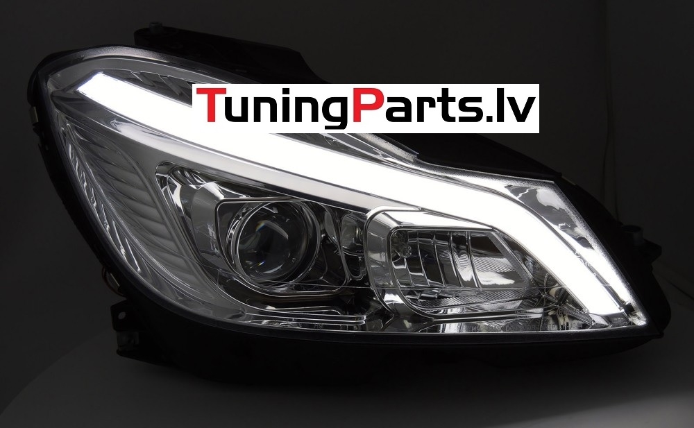 Mercedes Benz W204 C-class (11-14) priekšējie lukturi LED TUBE DRL, dinamiskie pagriezieni, hromēti