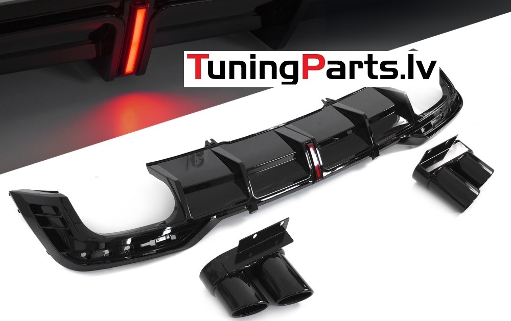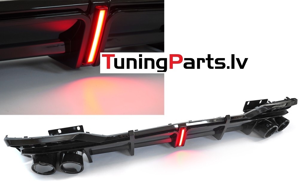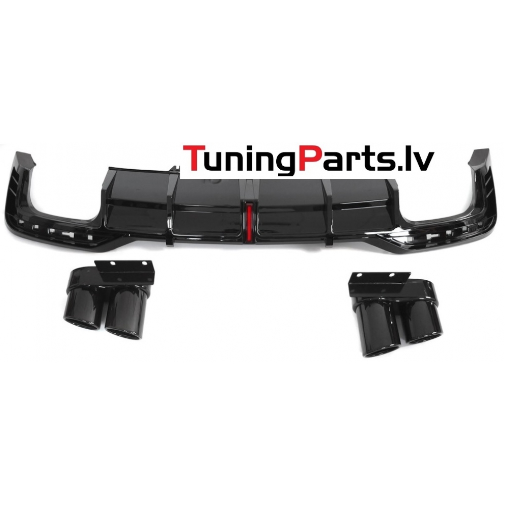 Audi A5 (19-23) aizmugurējā bampera difuzors RS - style melns/glancēts + uzgaļi