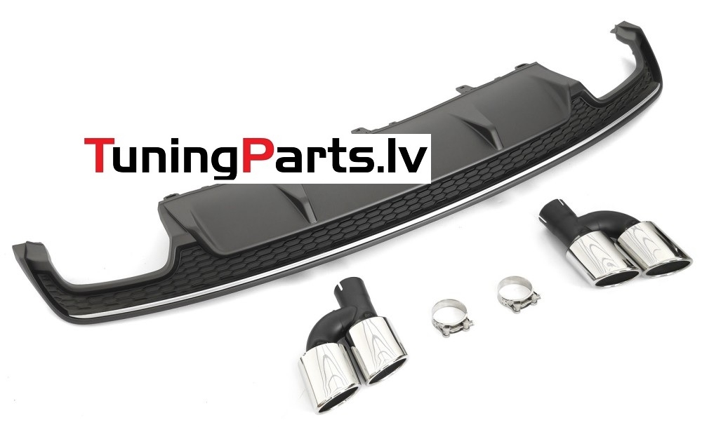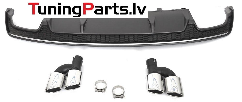 Audi A7 (14-18) aizmugurējā bampera difuzors S - Line style melns/sudraba + uzgaļi