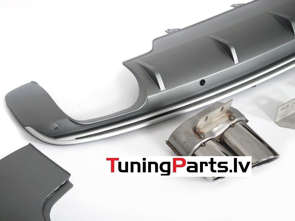 Audi Q5 (08-12) aizmugurējā bampera difuzors S - Line style sudraba + uzgaļi
