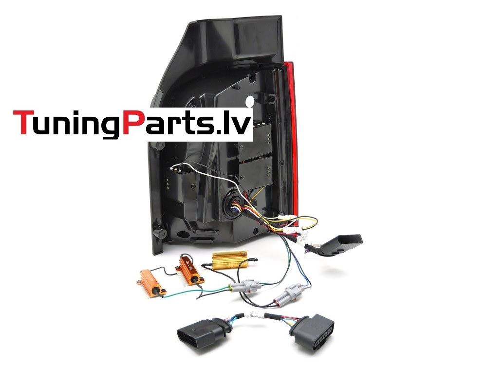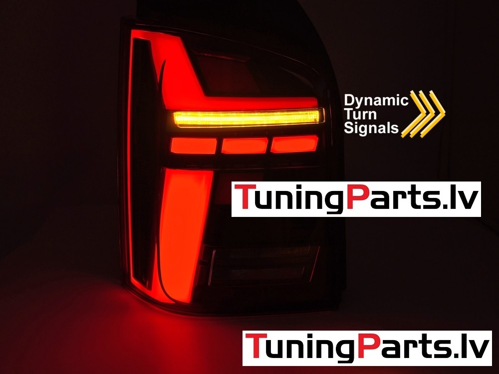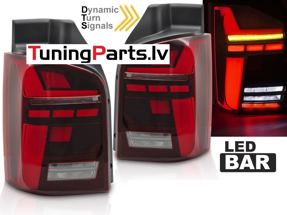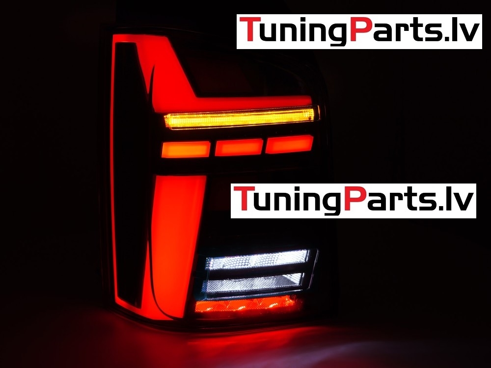 VW T5 (03-15) aizmugurējie LED lukturi, dinamiskie pagriezieni, gaismas sveiciena funkcija, sarkani, 1D