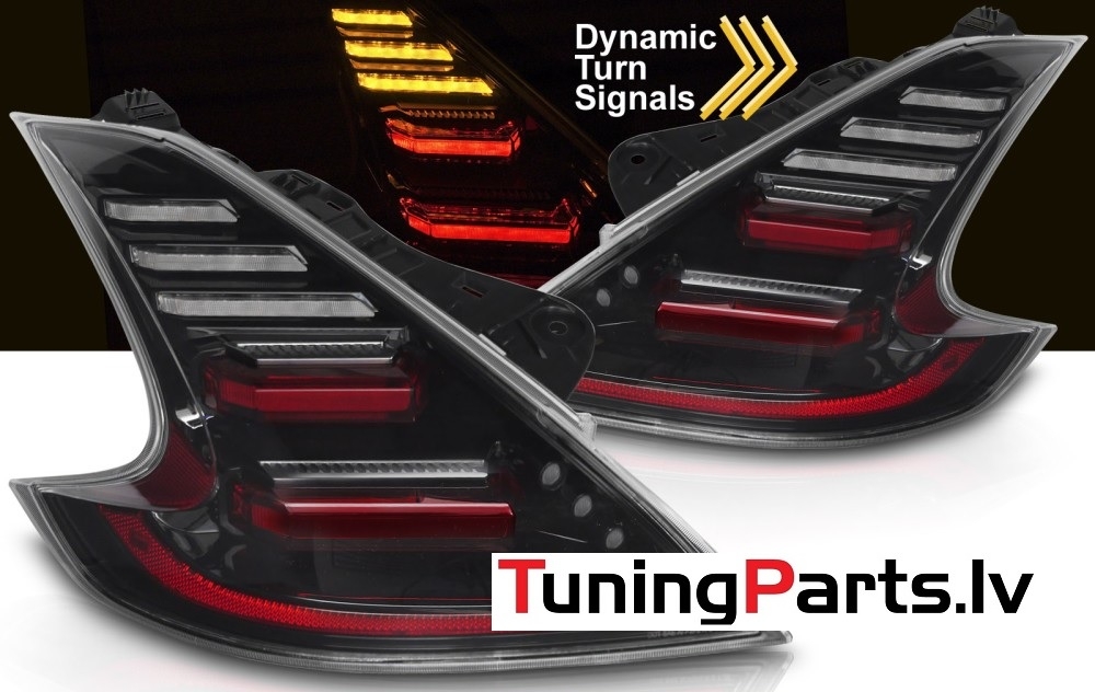 Nissan 370Z (09-20) aizmugurējie FULL LED lukturi, melni, dinamiskie pagriezieni, gaismas sveiciena funkcija