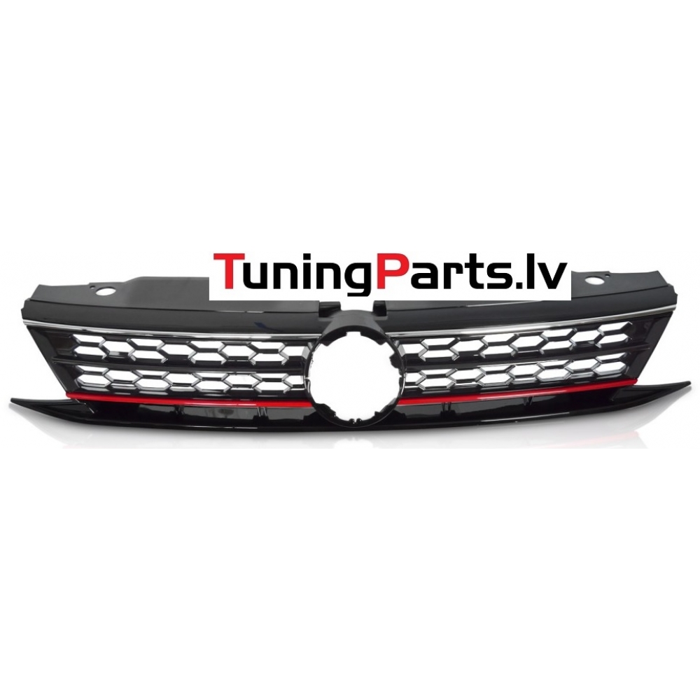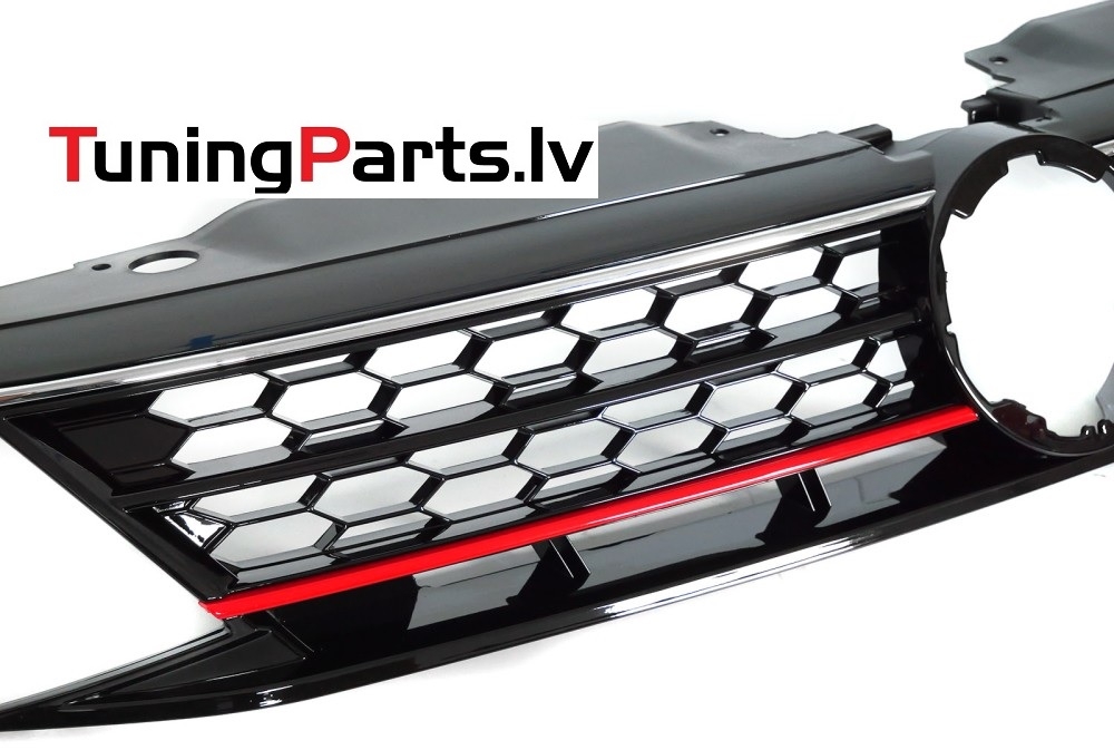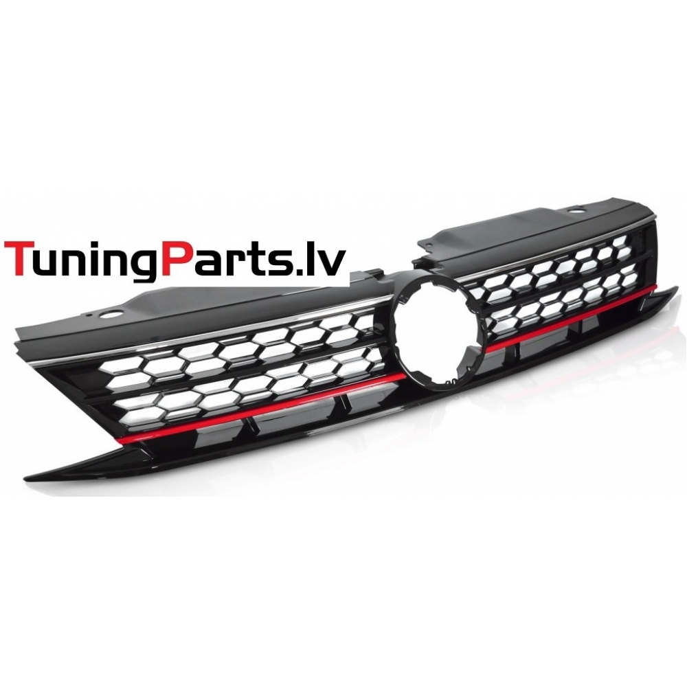 VW Jetta (14-18) priekšējā reste GLI Style melna/glancēta, sarkana/hromēta līnija