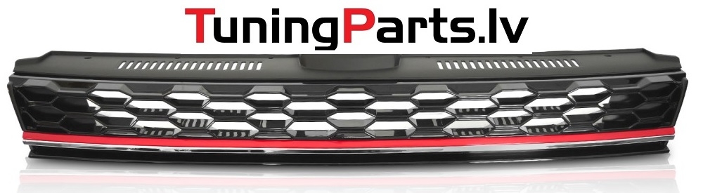 VW Golf 7 (17-19) priekšējā reste GTI style melna/glancēta ar sarkanu līniju