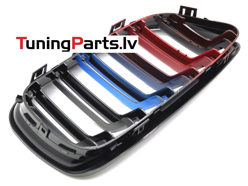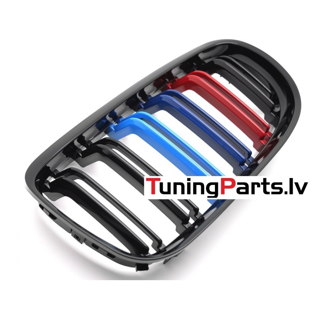 BMW E90/E91 (09-11) priekšējās restes melnas/glancētas dubultās 3 krāsu