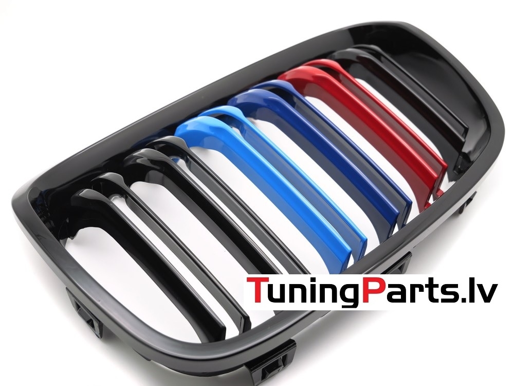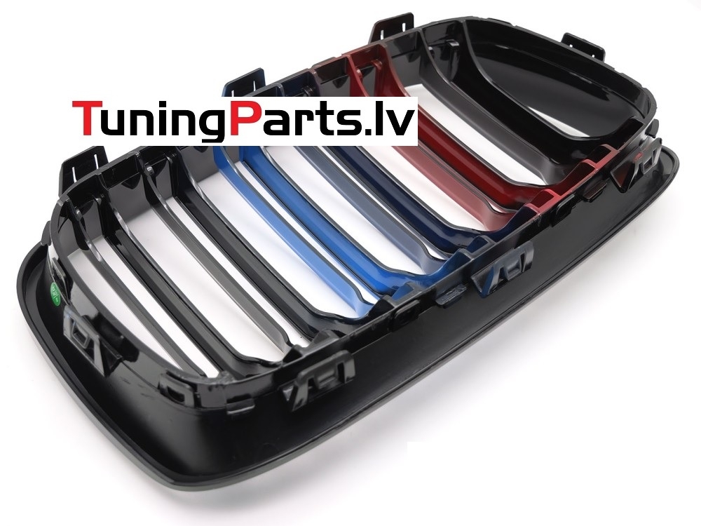 BMW F20/F21 (11-14) priekšējās restes melnas/glancētas dubultās 3 krāsu