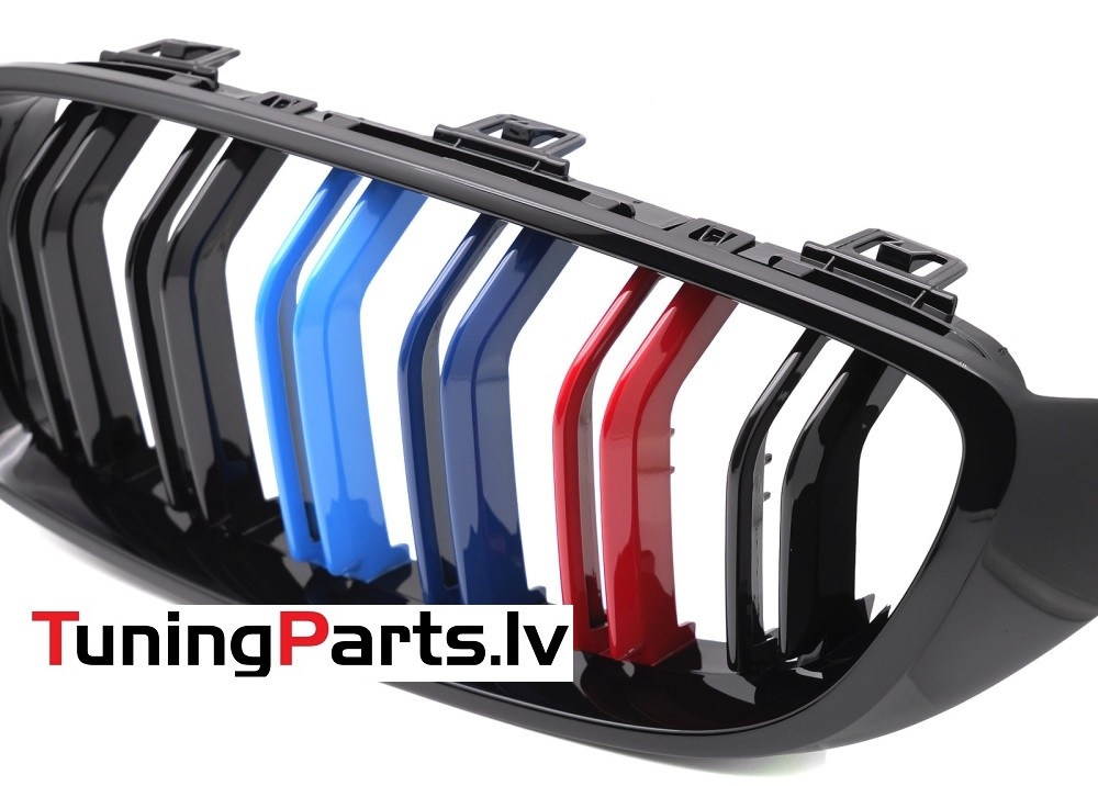 BMW F32/F33/F36 (13-20) priekšējās restes melnas/glancētas dubultās 3 krāsu