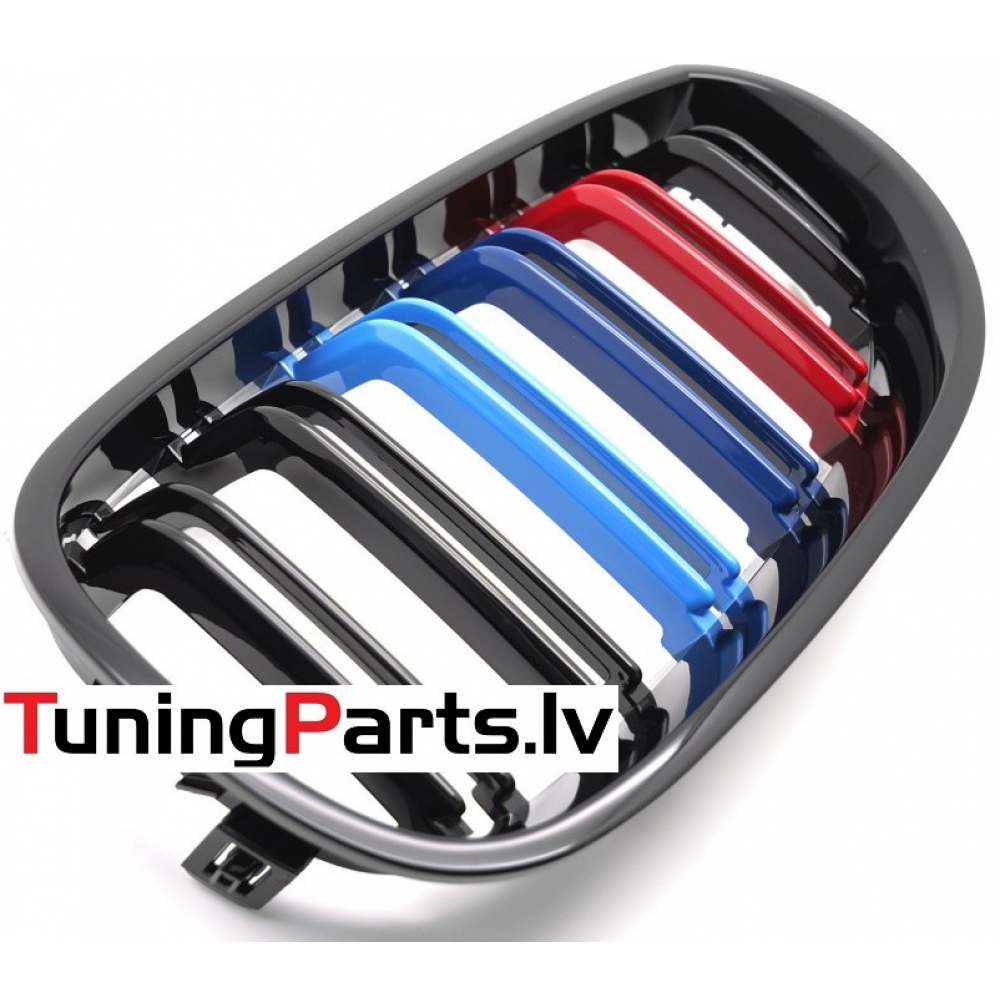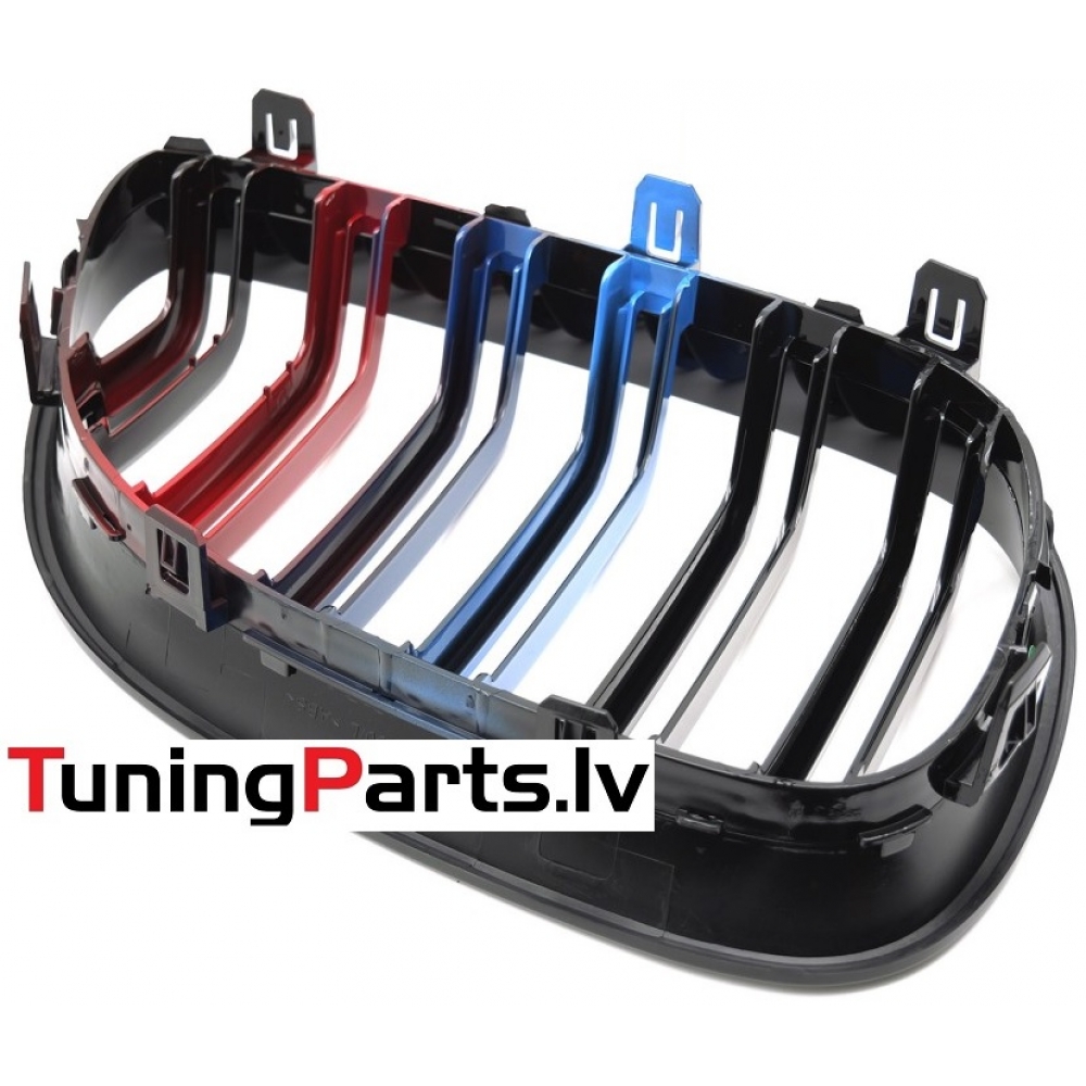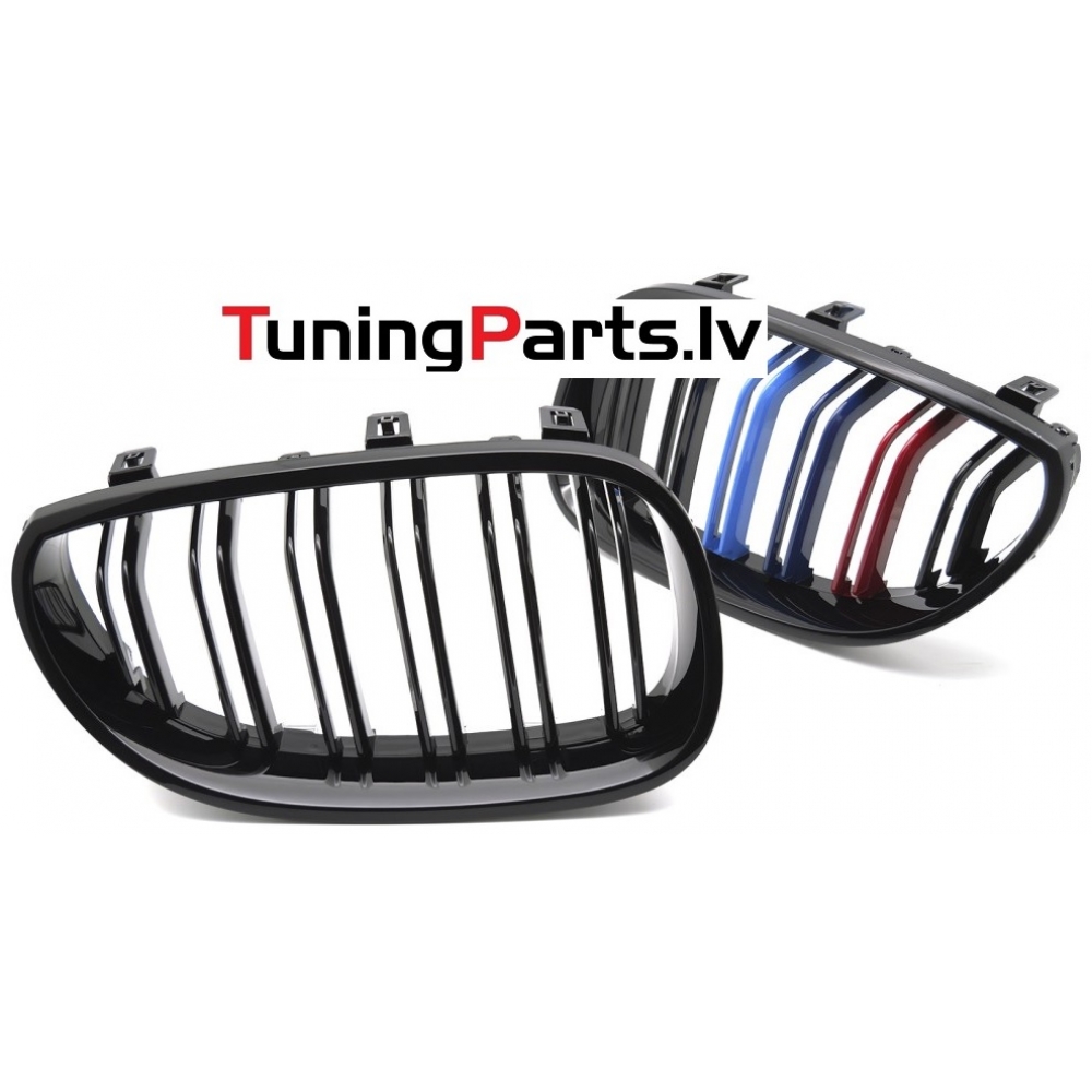 BMW E60/E61 (03-10) priekšējās restes melnas/glancētas dubultās 3 krāsu