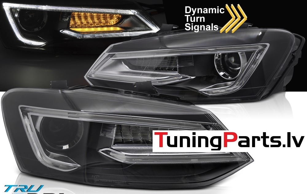 VW Polo 6R (09-17) priekšējie LED lukturi, dinamiskie pagriezieni, melni
