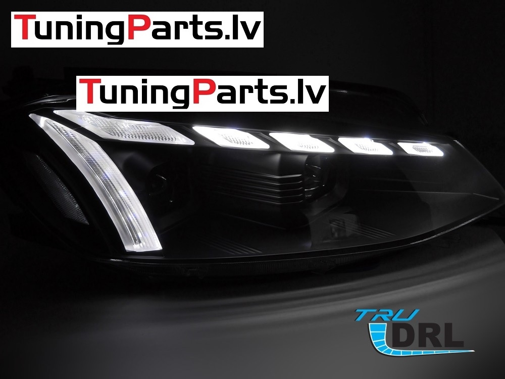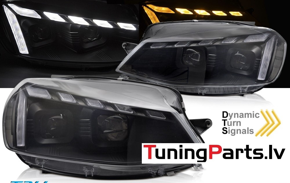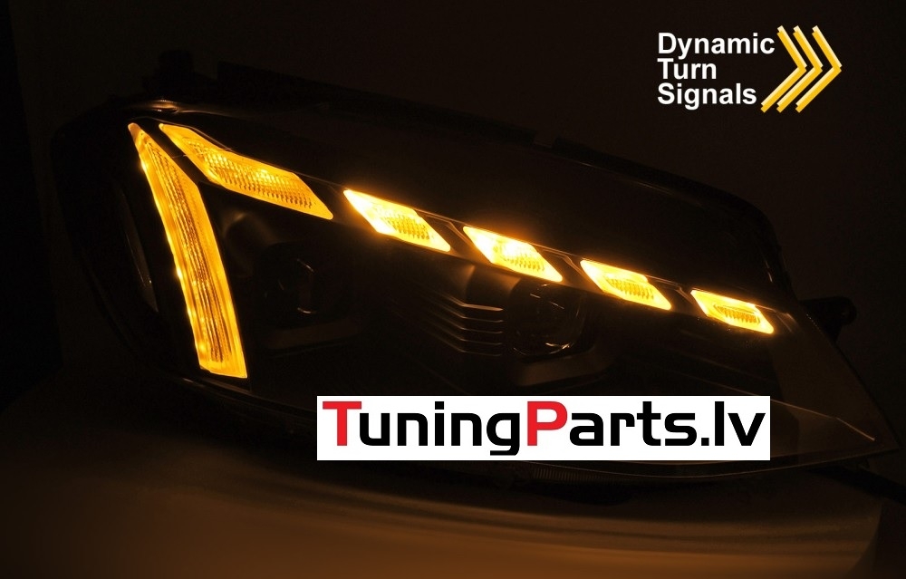 VW Golf 7 (17-19) priekšējie lukturi LED DRL, dinamiskie pagriezieni, gaismas sveiciena funkcija, melni