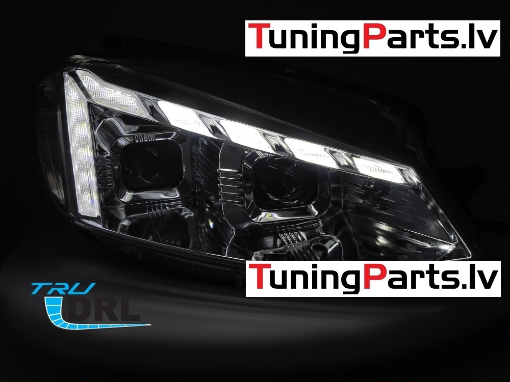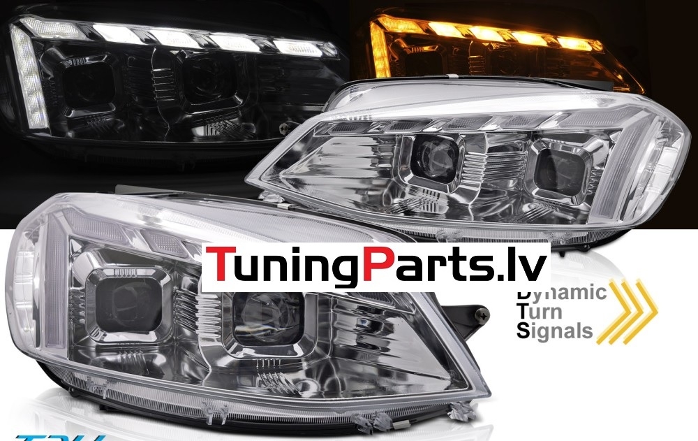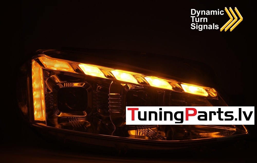 VW Golf 7 (17-19) priekšējie lukturi LED DRL, dinamiskie pagriezieni, gaismas sveiciena funkcija, hromēti