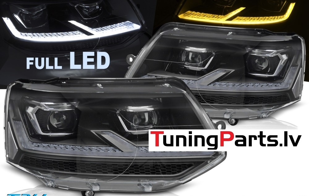 VW T5 (10-15) priekšējie FULL LED DRL lukturi, melni
