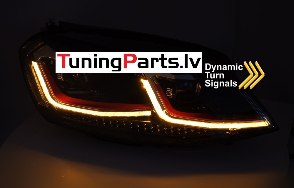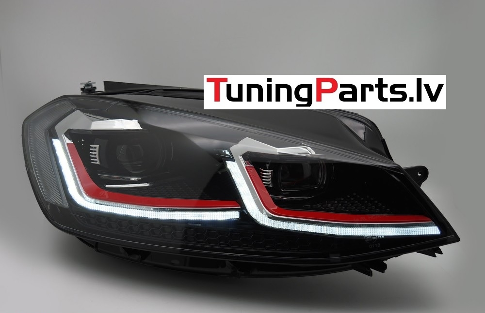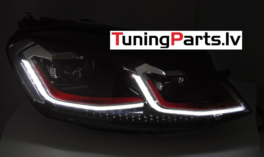 VW Golf 7 (17-19) priekšējie lukturi LED DRL, dinamiskie pagriezieni, melni, sarkanas līnijas