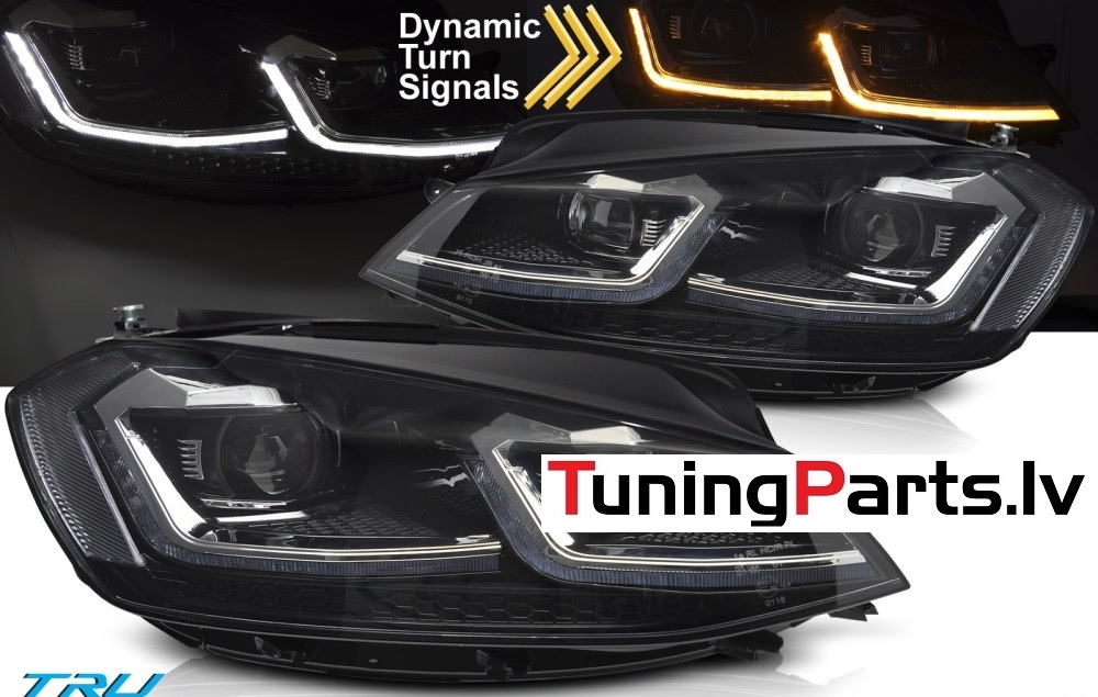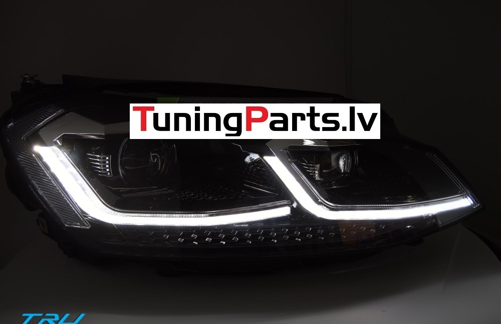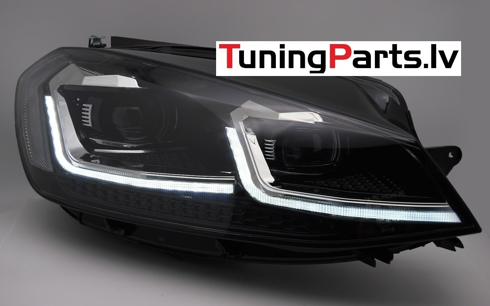 VW Golf 7 (17-19) priekšējie lukturi LED DRL, dinamiskie pagriezieni, melni, sudraba līnijas