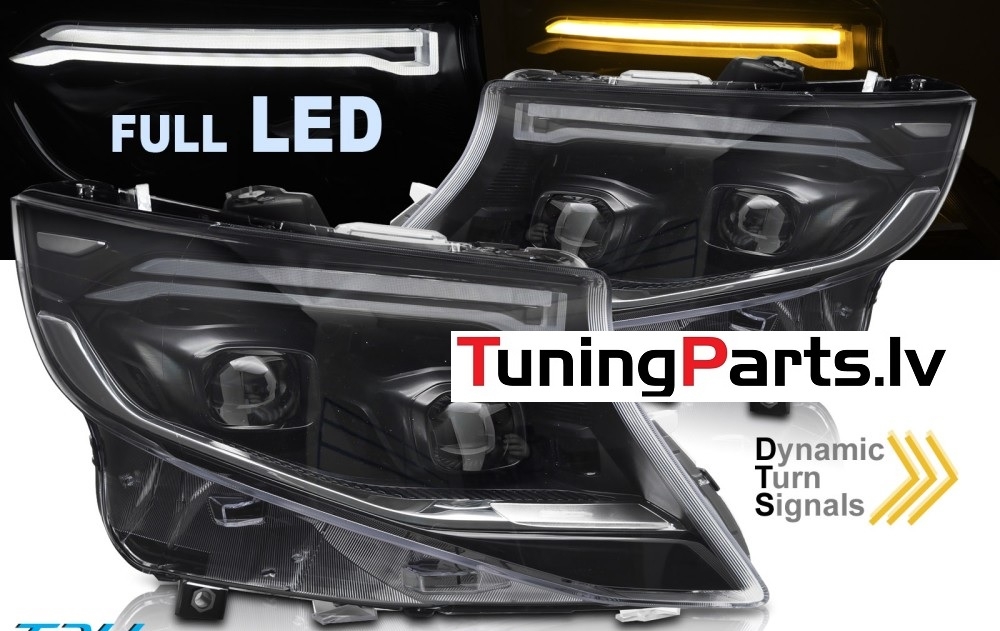 Mercedes V-class, Vito W447 (14-23) priekšējie FULL LED DRL lukturi, dinamiskie pagriezieni, gaismas sveiciena funkcija, melni