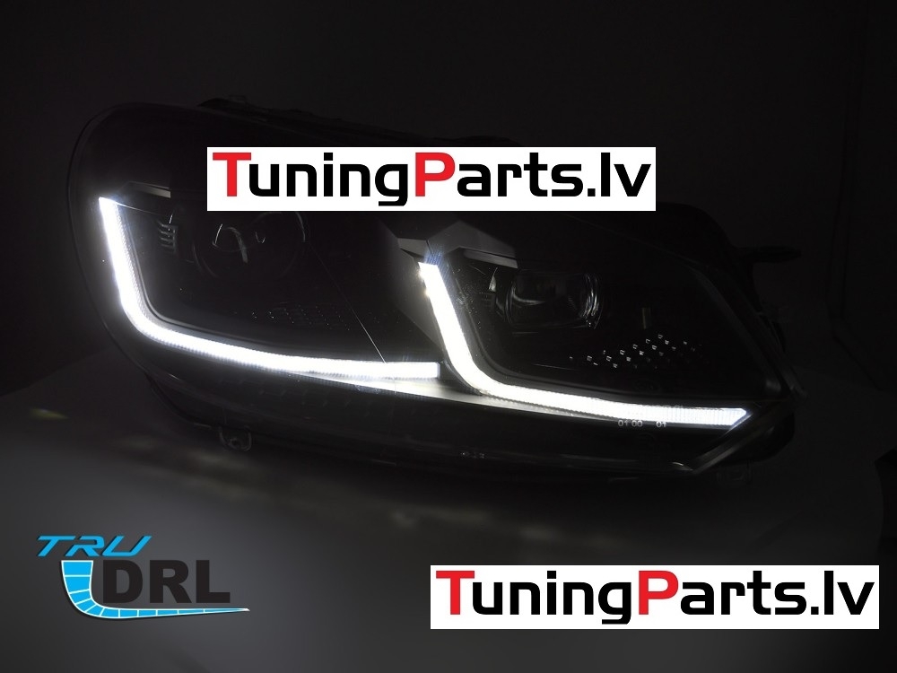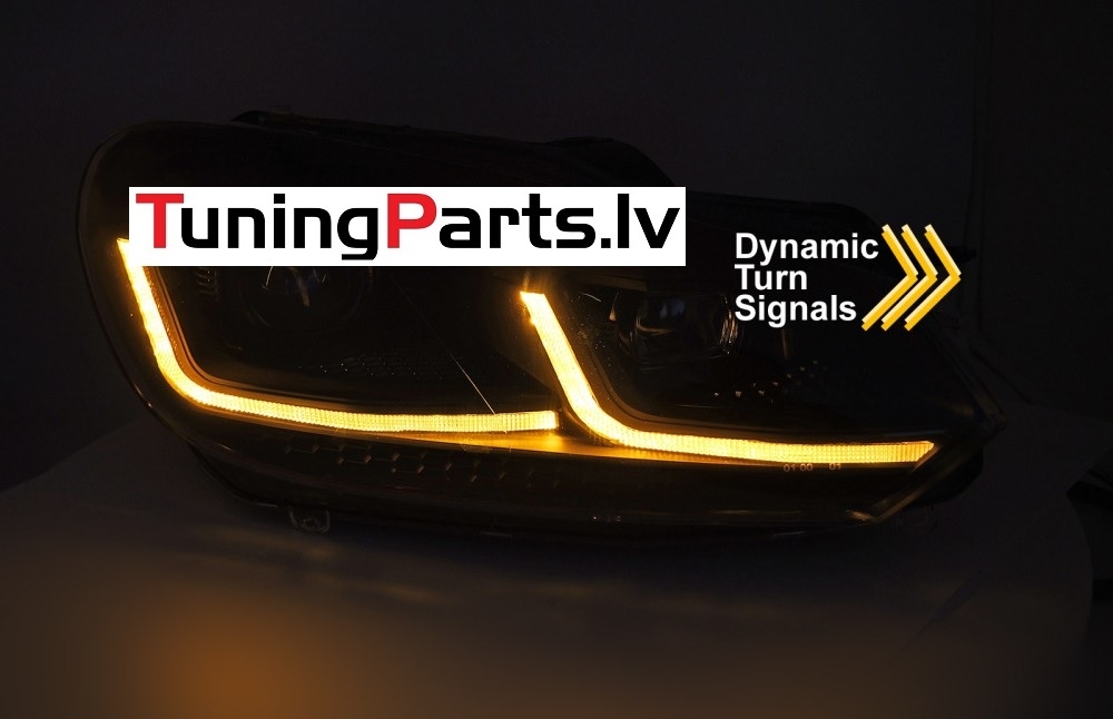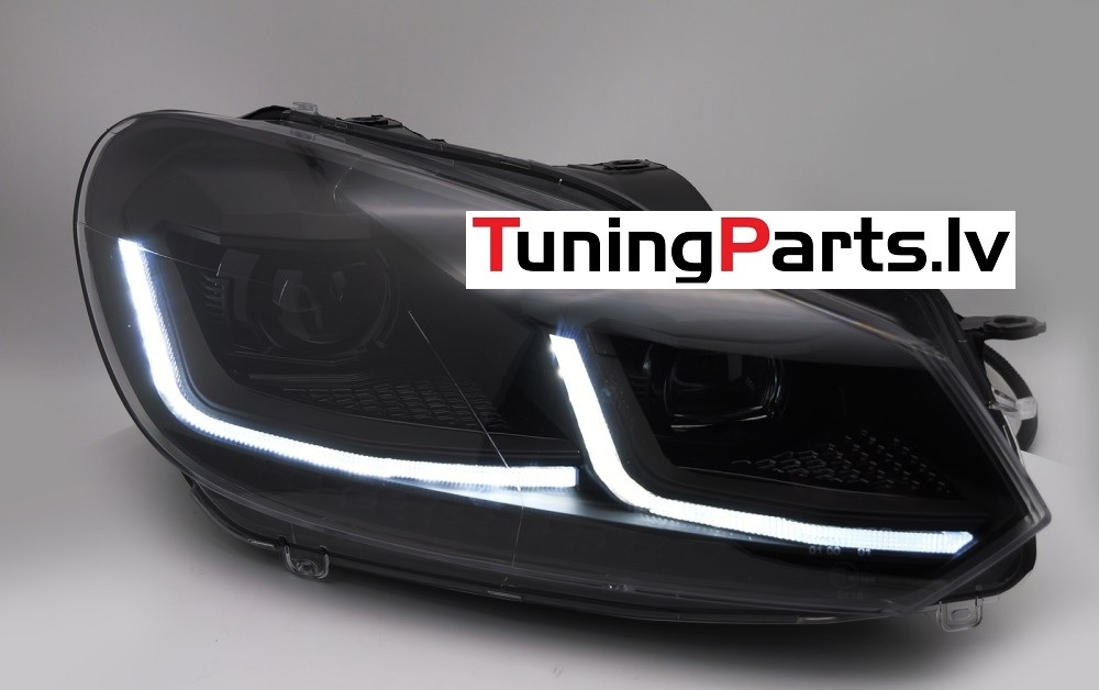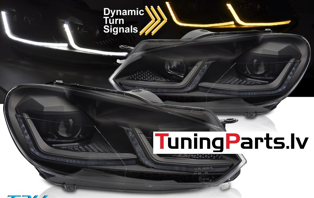 VW Golf 6 (08-12) priekšējie LED DRL lukturi, dinamiskie pagriezieni, melni