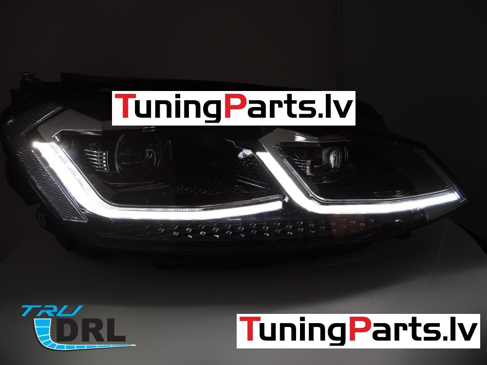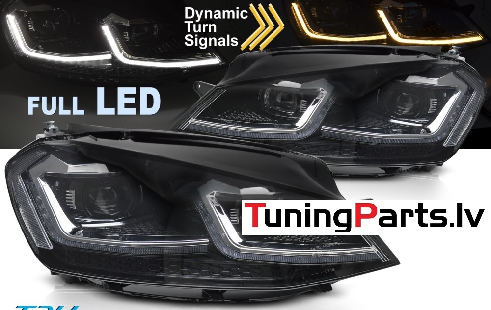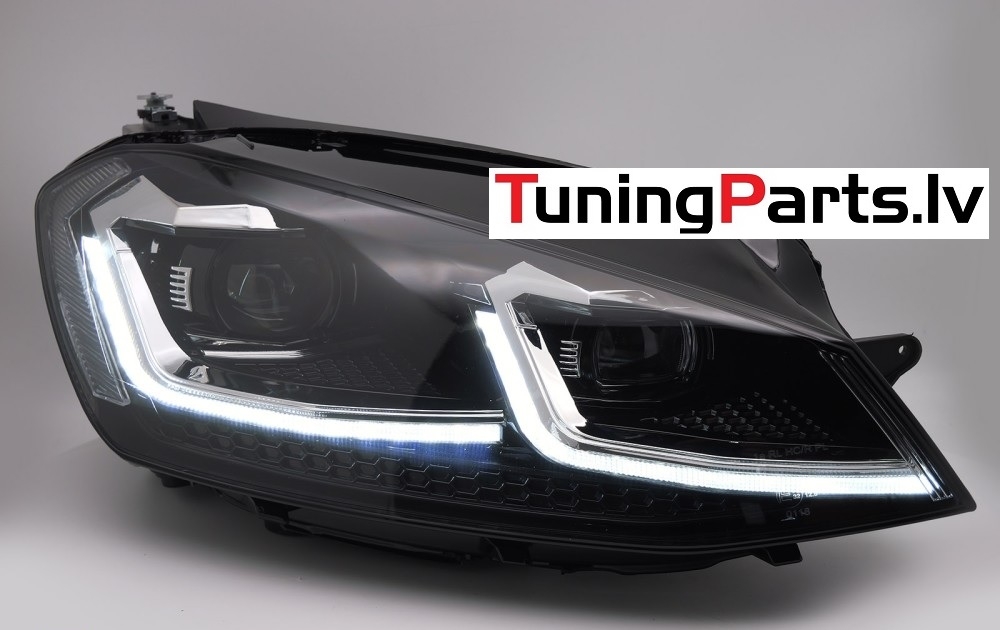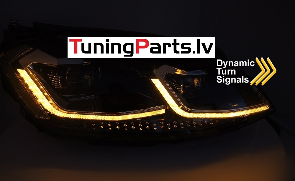 VW Golf 7 (13-17) priekšējie lukturi FULL LED DRL, dinamiskie pagriezieni, melni, sudraba līnijas