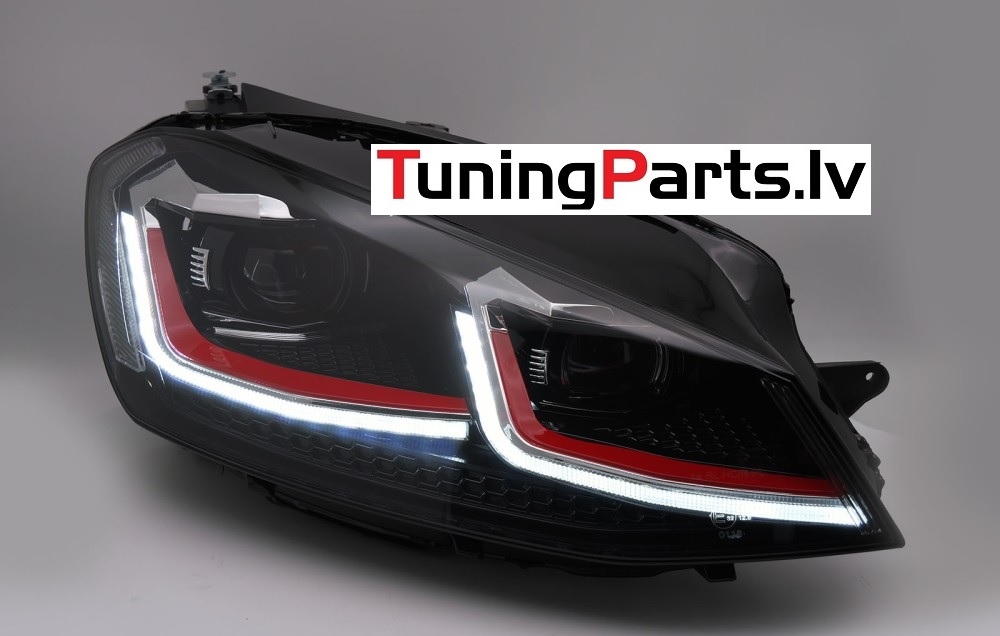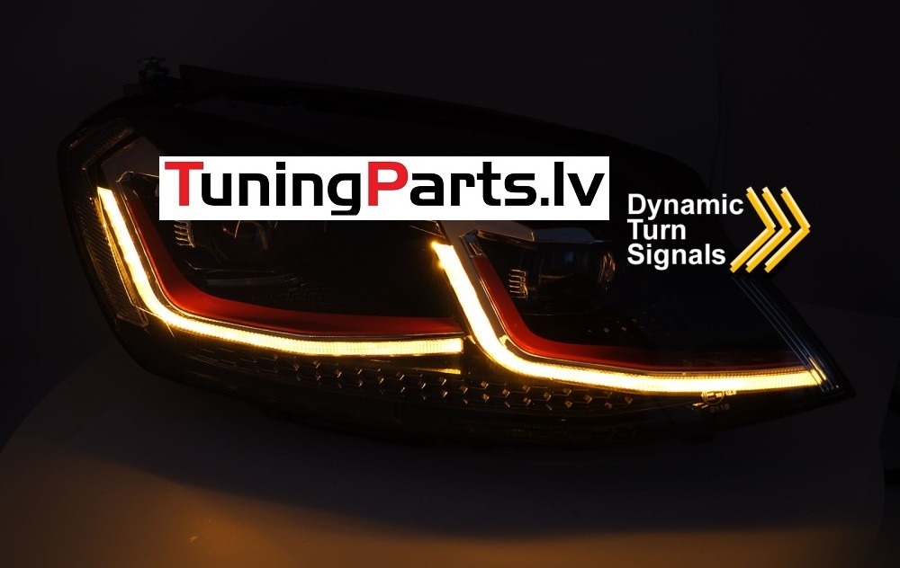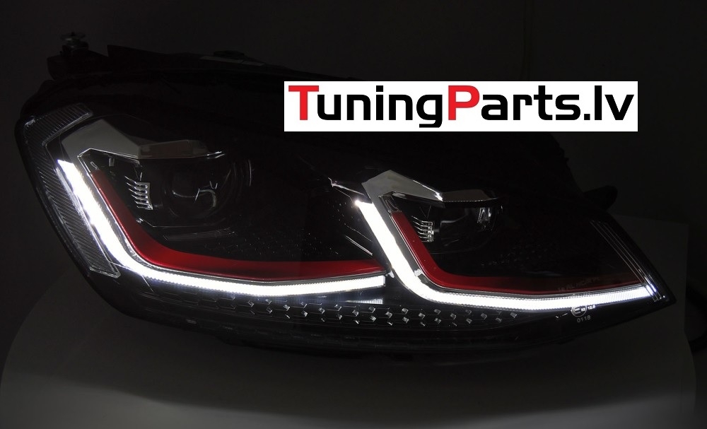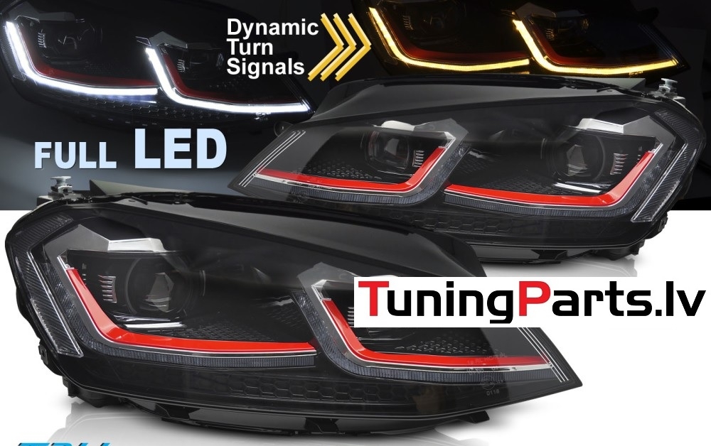 VW Golf 7 (13-17) priekšējie lukturi FULL LED DRL, dinamiskie pagriezieni, melni, sarkanas līnijas