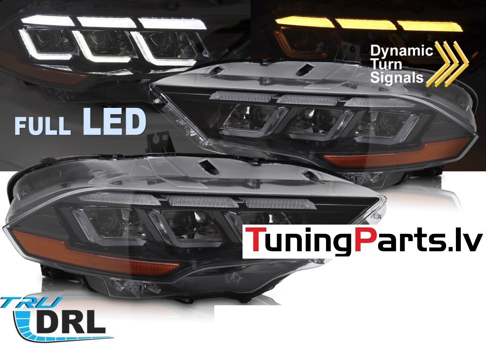 Ford Mustang (18-22) priekšējie FULL LED DRL lukturi, dinamiskie pagriezieni, gaismas sveiciena funkcija