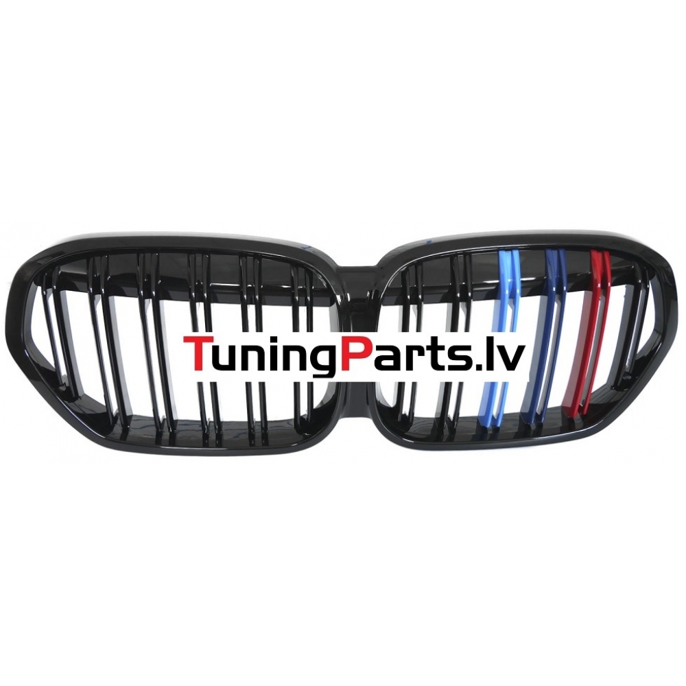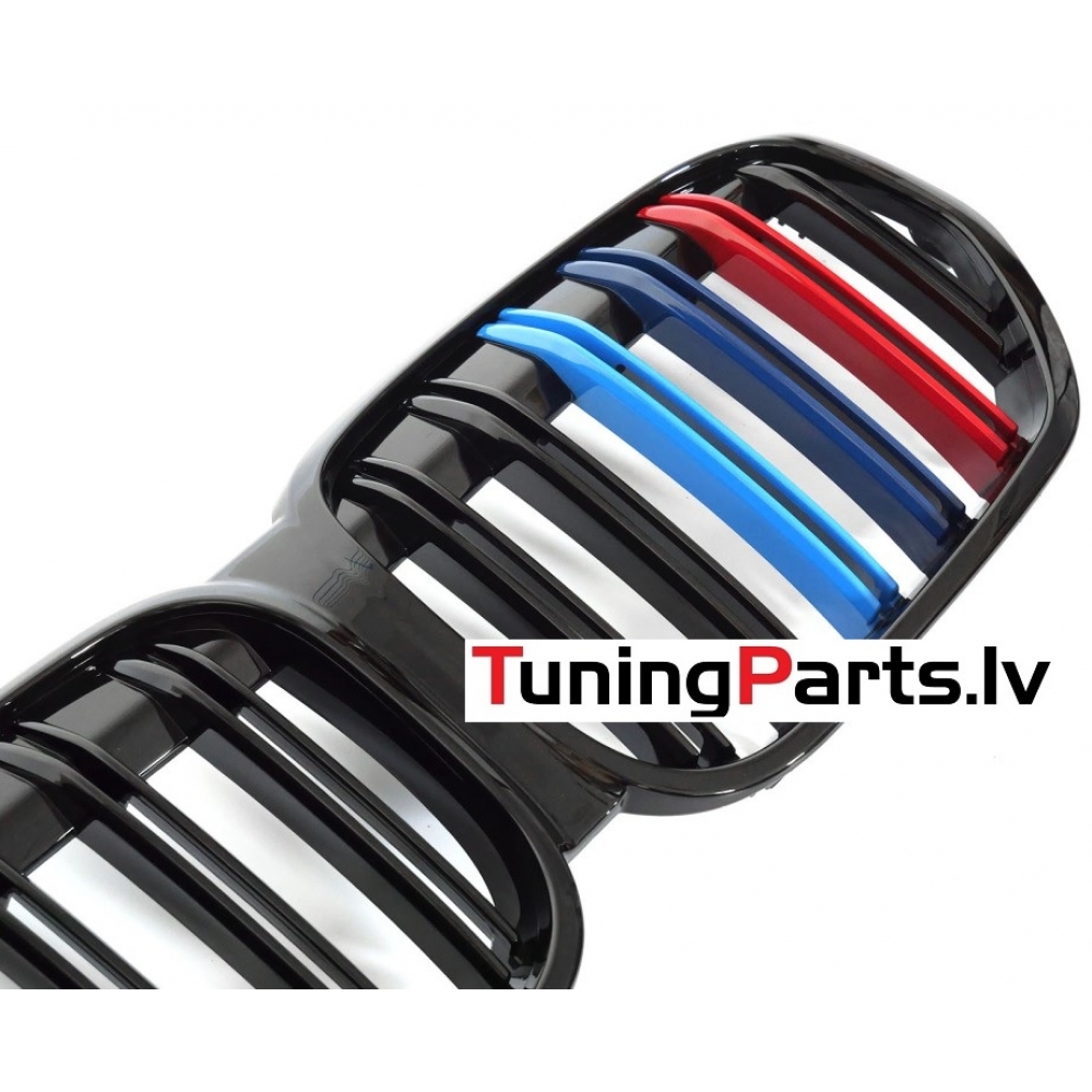 BMW X1 F48 LCI (20-22) priekšējās restes melnas/glancētas dubultās 3 krāsu