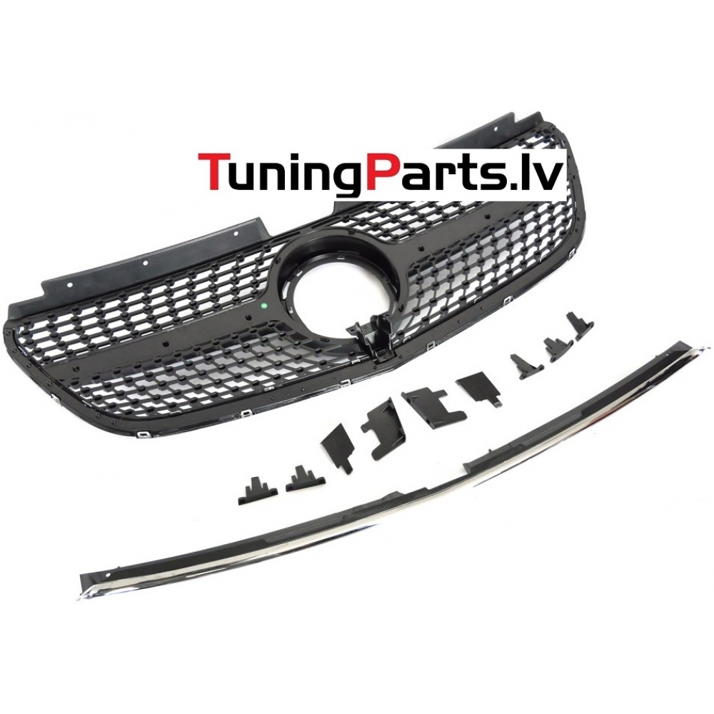 Mercedes-benz Vito W447 (19-23) priekšējā reste Diamond Style melna/hromēta