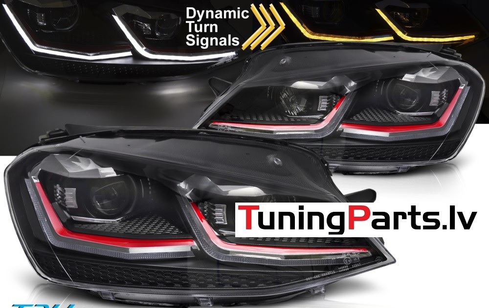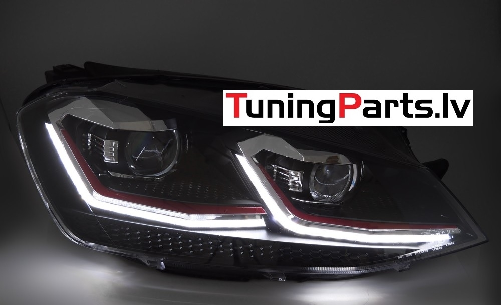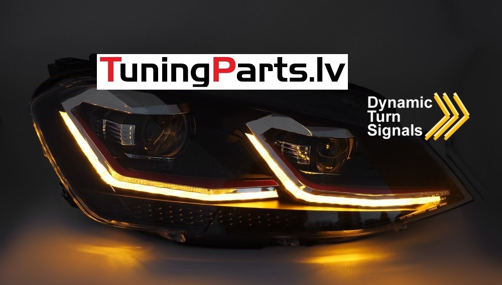 VW Golf 7 (13-17) priekšējie lukturi LED DRL, dinamiskie pagriezieni, melni, sarkanas līnijas