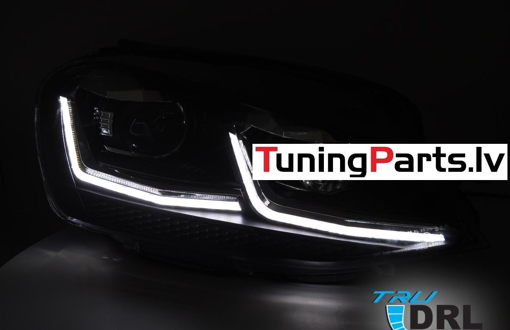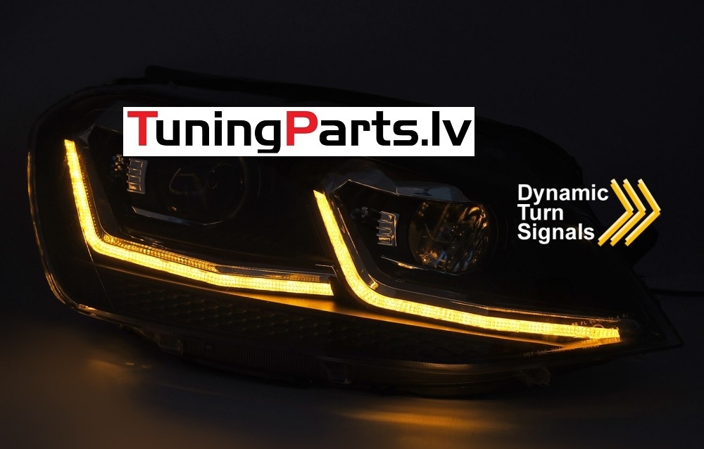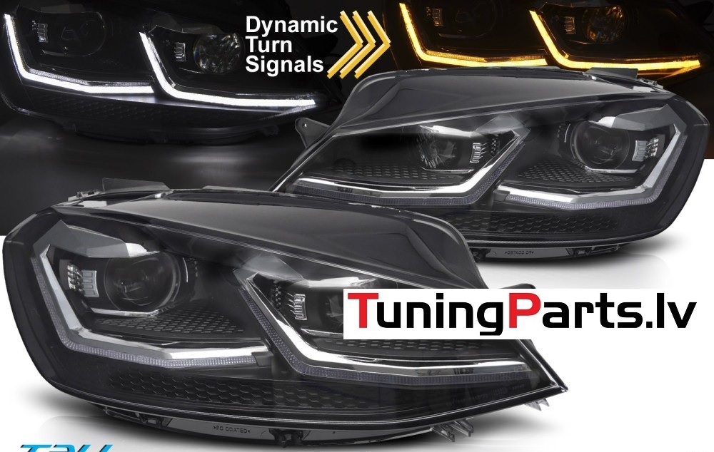 VW Golf 7 (17-19) priekšējie lukturi LED DRL, dinamiskie pagriezieni, melni, sudraba līnijas