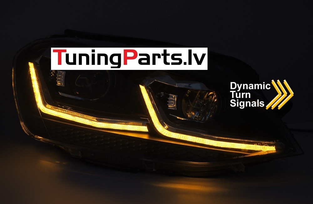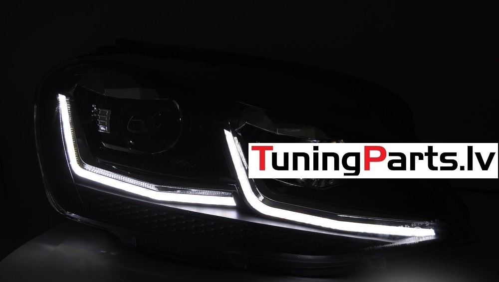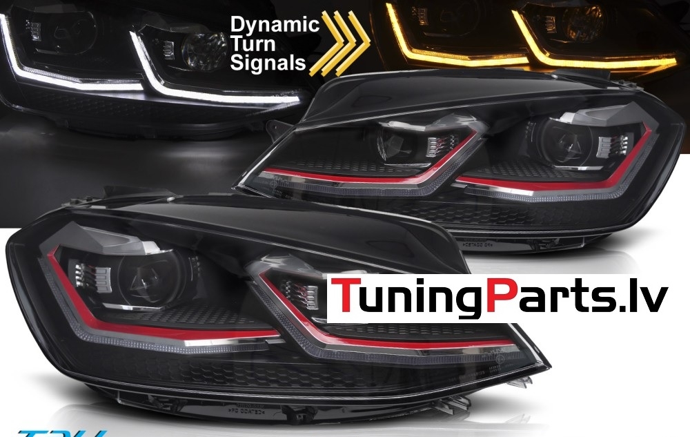 VW Golf 7 (17-19) priekšējie lukturi LED DRL, dinamiskie pagriezieni, melni, sarkanas līnijas